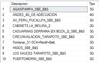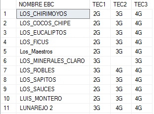 Si se dan cuenta en la tabla Servicio hay un proyecto llamado LOS_MINERALES_CLARO que esta en servicio pero solo tiene tecnología 3G y lo que yo tengo en mi tabla estaciones es solo 2G, es decir no esta en servicio.
