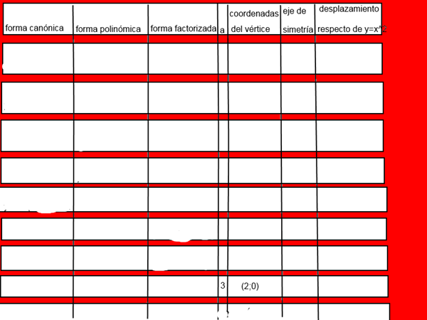 Bueno aquí tengo un cuadro de la función cuadrática espero que puedan hacerlo uwu les agradecería mucho como debo hacerlos en partes faltan 1 mas :3