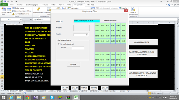MsgBox "Selecciona un horario", vbExclamation, "REGISTRAR CITA"