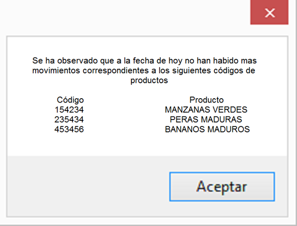 Una vez realizada esta tarea fila por fila, si existen en la hoja2 fechas anteriores a la fecha de apertura del libro, me saque un msgbox diciéndome lo siguiente: "Se ha observado que a la fecha de hoy no han habido más movimientos correspondientes a los siguientes códigos de productos"