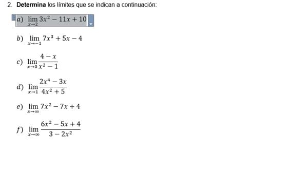 a) Directamente es evaluar el polinomio en el valor límite, o sea
