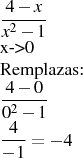 [4 - (0)] / [(0)^2 -1] = 4 / (-1) = -4
