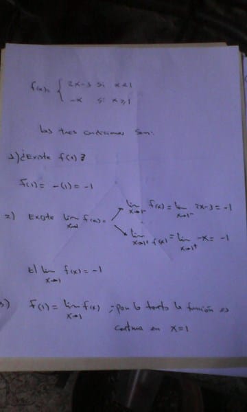 Función continua o discontinua si f(x)={2x-3 si x<1