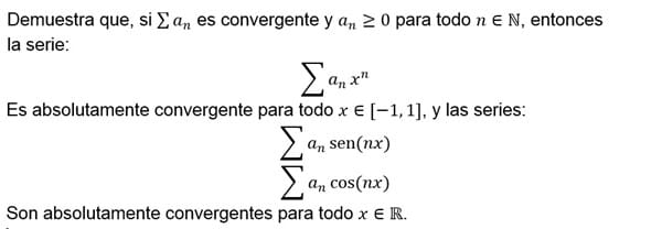 Por favor, si me ayudan en este problema de demostración de series absolutamente convergentes.