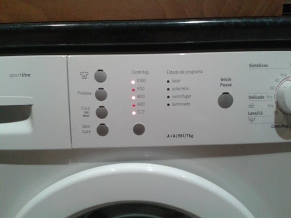 Mi lavadora Bosch sportline de 7kg se ha parado sola estando lavando sin llegar a terminar el ciclo de lavado, ahora no funciona y se le encienden parpadeando algunas luces de led de las revoluciones de centrifugado pero no todas solo las de 1000, 600 envio una imagen .saludos y muchas gracias
