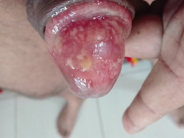 Todos los días me lavo con Bacterodine y me aplico una crema cicratizante que se llama trofobol. Al levantarme encuentro en el calzoncillo una escama casi amarilla y en el glande estos puntos blancos difíciles de de quitar pero no se si es la crema, infección o nueva piel en formación.
