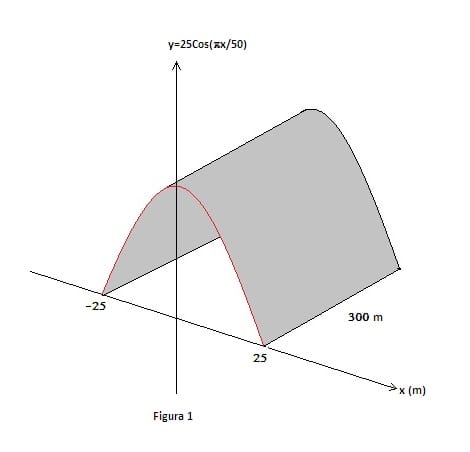 $$\begin{align}&l=\int_a^b \sqrt{1+(f'(x))^2}dx\\&\\&f(x)=25cos \left(\frac{\pi}{50}x \right)\\&\\&f'(x)= -\frac{\pi}{2}sen \left(\frac{\pi}{50}x \right)\\&\\&l=\int_{-25}^{25}\sqrt{1+\frac{\pi^2}{4}sen^2 \left(\frac{\pi}{50}x \right)}dx\end{align}$$