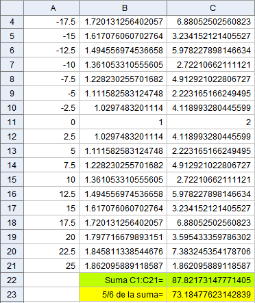 Sumaremos los valores de esa columna C y multiplicaremos el resultado por la constante 5/6