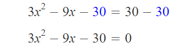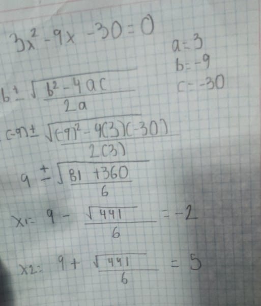 $$\begin{align}&x^2-6x+9=0\\&3x^2-9x=30\end{align}$$en serio necesito ayuda mi profe de mate dijo que usaramos la formula general que es: