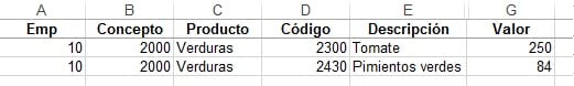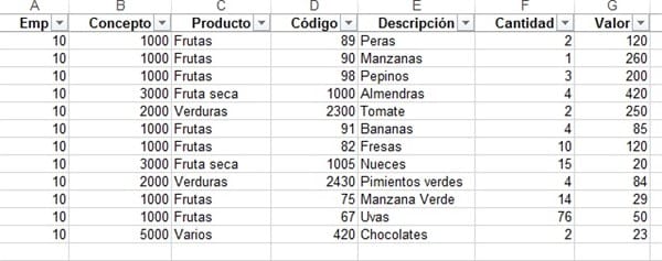 Debe llevar el concepto 2000 a la hoja Verduras y la 3000 a la hoja Frutas secas.