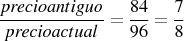 Un libro de historia costo $84 pesos el año pasado. Este año la docena de dichos libros cuesta $1152 pesos ¿cuál es la razón geométrica del precio antiguo y actual del libro?