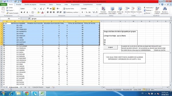Tengo una base de datos de grupos de alumnos los quiero separar en cada hoja por grupo e identificarlo por aprobado y reprobado agradeceria mucho la ayuda