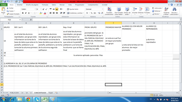Crea otra pregunta para calcular, las columnas E y F: promedio por grupo (media ponderada) y Promedio Mayor.
