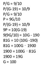 En una granja hay patos y gallinas en razón 9:10, si sacan 19 gallinas, la razón se invierte. ¿Cuántas gallinas había inicialmente?