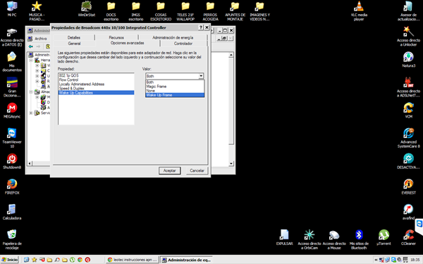 -Opciones de tarjeta de red (administraicón de energia): Las tres habilitadas: (ver imagen)