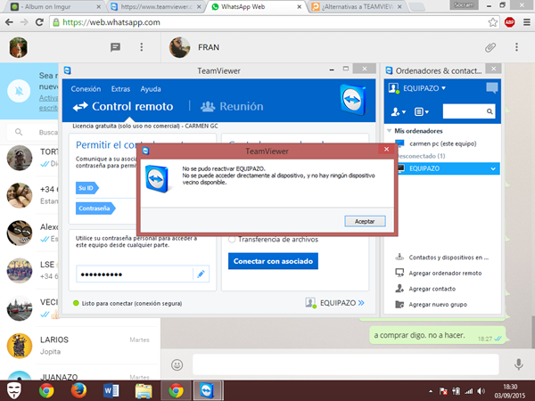 La contraseña del team es mia, no cambia nunca. Si el pc está encendido es muy fácil conectarse lo hace automático.