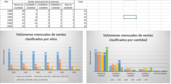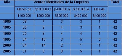 Los datos que se presentan a continuación se refieren a la distribución de egresados según las ventas mensuales por año considerado.