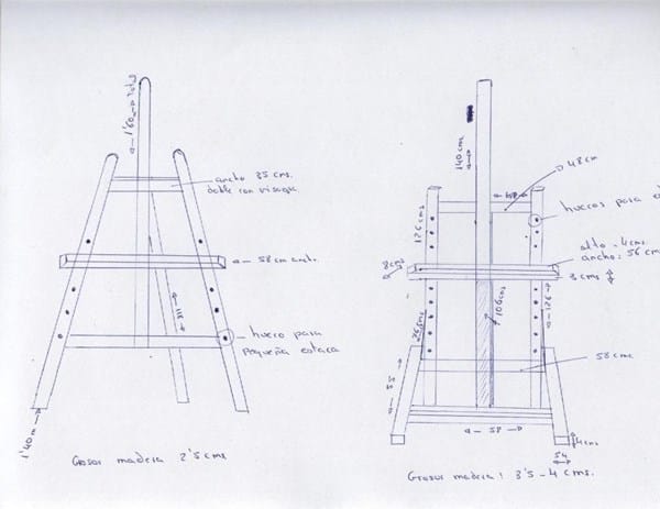 Necesito que alguien me proporcione un plano para fabricar un caballete.