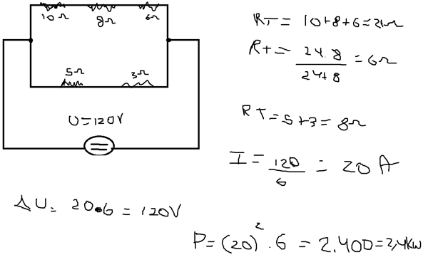Tengo esté trabajo la cual debo buscar la corriente, la tensión y la potencia, ya lo he hecho pero quisiera saber si lo he hecho bien.