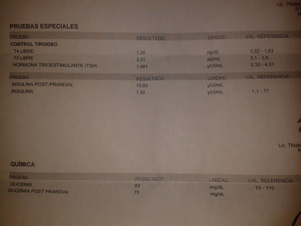Interpretación Resultados examen perfil tiroideo y glicemia post-pandrial