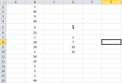 En la hoja de Excel tengo números aleatorios (del 0 al 50) en la columna B, empezando en B1 hasta la fila B500 aproximadamente.