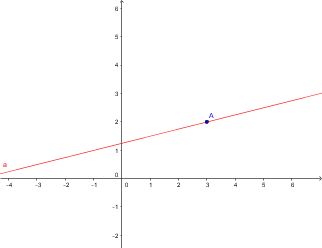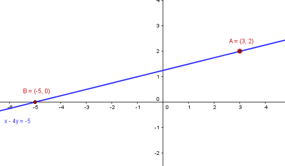 La ecuación de la recta en forma general, que pasa por el punto (3,2) y que su pendiente es igual a¼ . Además grafique