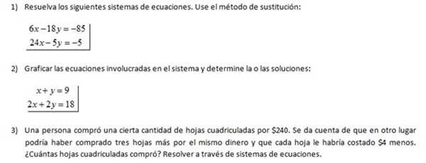 $$\begin{align}&6x-18y=-85\\&24x-5y=-5\\&\\&\text{despejamos x en la primera}\\&6x =18y-85\\&\\&x=\frac{18y-85}{6}\\&\\&\text{llevamos ese valor a la segunda}\\&\\&24·\frac{18y-85}{6}-5y =-5\\&\\&4(18y-85)-5y=-5\\&\\&72y - 340 - 5y = -5\\&\\&67y =335\\&\\&y = \frac {335}{67}= 5\\&\\&x=\frac{18·5-85}{6}=\frac{90-85}{6}=\frac 56\\&\\&\\&--------------\\&x+y=9\\&2x+2y=18\\&\\&\text{Despejamos x en la primera}\\&\\&x=9-y\\&\\&\text{la sustituimos en la segunda}\\&\\&2(9-y)+2y=18\\&\\&18-2y +2y=18\\&\\&0=0\end{align}$$