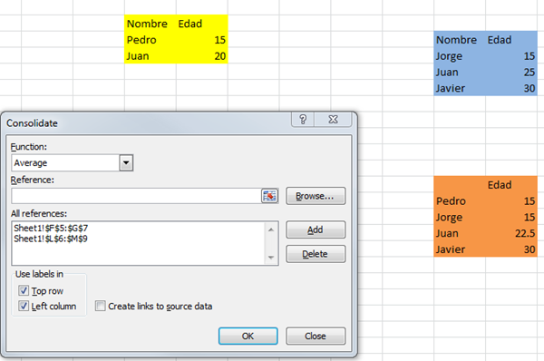 Asumiendo que se trata del mismo Juan, hay que resolver que hacer con el dato 2. Se lo podes especificar a Excel. Yo puse Promedio, pero depende a que se refiera va a estar bien o mal.