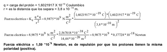 Segundo: La separación entre dos protones en una molécula es de 3.80x10 a la menos diez m. Hallar la fuerza eléctrica ejercida entre ellos.