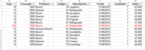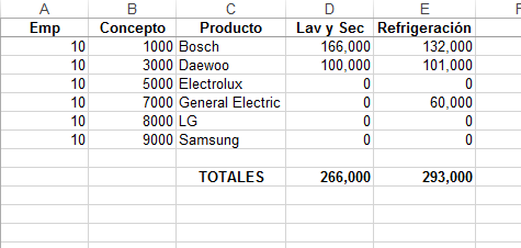 Necesito sumar una gran variedad de conceptos que tiene muchos códigos y varias condiciones. El ejemplo se presenta sólo con algunos.