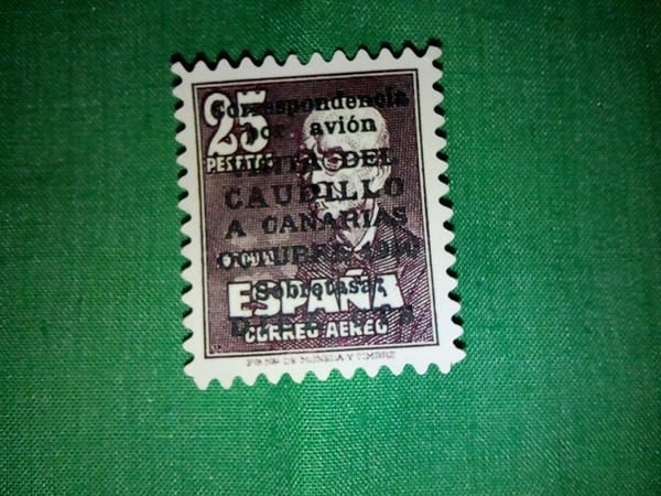 Precio sello de 25 pesetas visita del caudillo a canarias octubre 1950