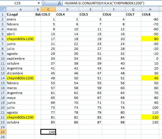 tengo esta formula =SUMAR.SI.CONJUNTO(H:H;A:A;"CHEPM800X1200")