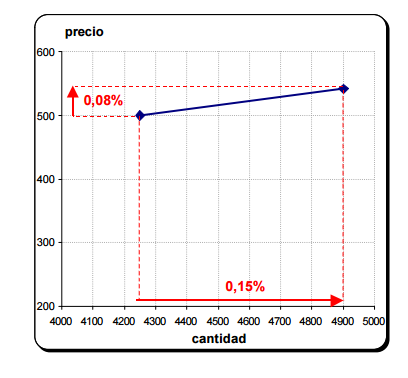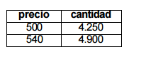 -A un precio de 500 u.m. El número de unidades que la empresa USB ofrece en el mercado 4.250 unidades del único bien que produce. Al aumentar el precio a 540 u.m., el volumen total de unidades ofrecidas en el mercado es de 4.900.