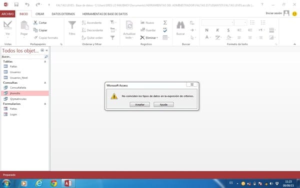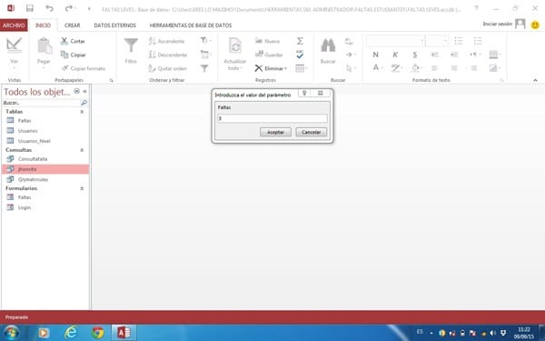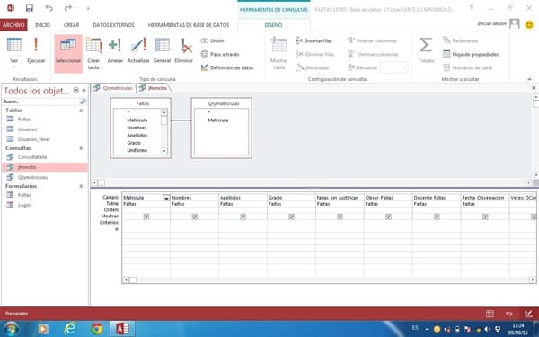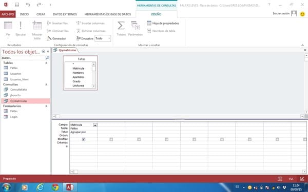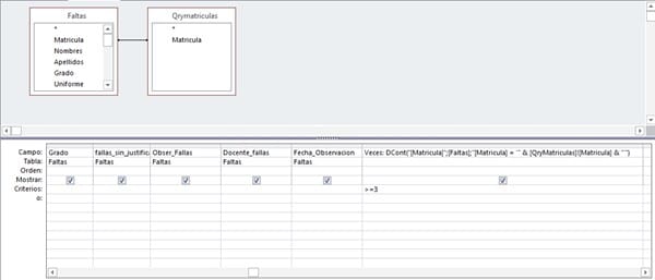 Filtrar en una consulta en access 2013 sólo los registros que pertenezcan a una misma matrícula y que sean iguales o mayores a 3