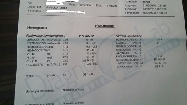 L ehice un hemograma a mi hija de 1 año y 5 meses, y le salieron algunos puntos alterados, adjunto foto del examen.
