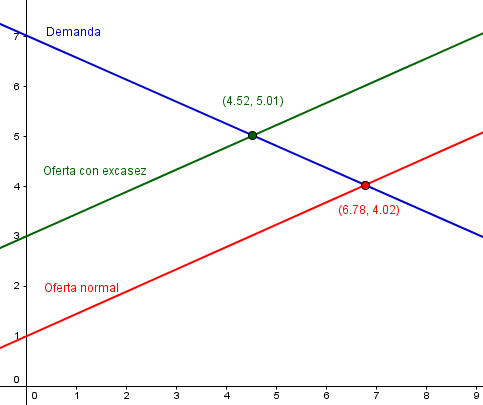 5.- Que sucede con el precio del tequila, si hay una sequía que evita que la cebada y demás ingredientes de la cerveza se den, ¿disminuyendo su producción? Explique y Grafique.