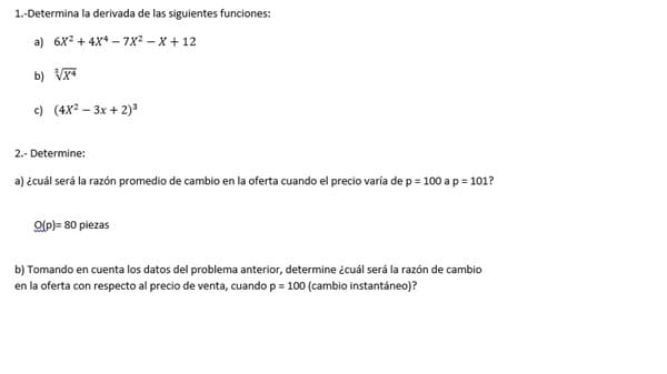 Determina la derivada y razón promedio de cambio
