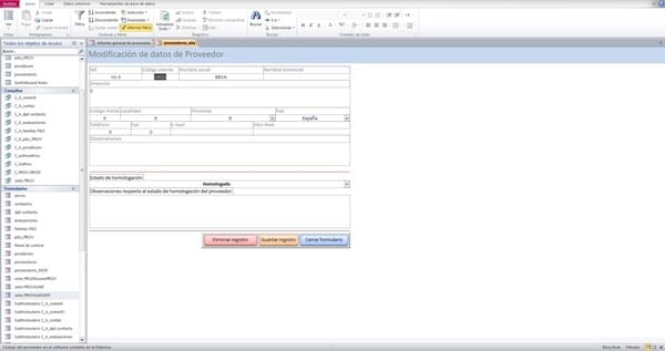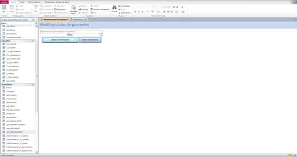 El problema es que cuando se abre el formulario del proveedor está bloqueado y no me deja editarlo. Si abro el formulario directamente sí que puedo seleccionar un proveedor y modificar datos, pero si lo abro a partir del combo del otro formulario no.