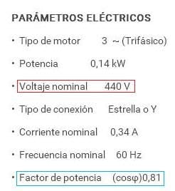 Se supone que la tensión de entre fases es de 400V (V) y la frecuencia (f) de 50 Hz.