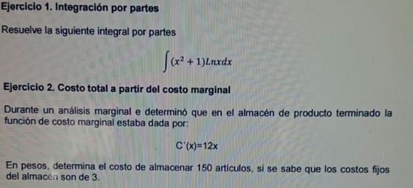 $$\begin{align}&CT(x)=\int 12x dx = 6x^2+C\\&\\&\text{los costos fijos son los costos cuando}\\&\text{hay 0 unidades almacenadas, luego}\\&\\&CT(0) = 3\\&CT(0) = 6·0^2+C=C\\&\\&\text{luego }C=3\\&\\&\text {y la función del costo total es}\\&\\&CT(x) = 6x^2+3\\&\\&\text{Luego el costo para 150 artíclos es}\\&\\&CT(150) = 6·150^2+3=$135003\end{align}$$: