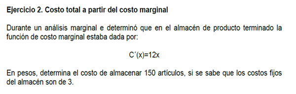 Necesito ayudad para resolver el siguiente ejercicio de costo total a partir del costo marginal. Y es necesario incluir todo el proceso de solución. Gracias.
