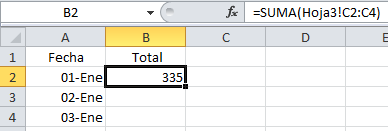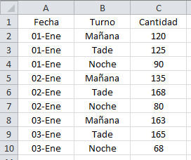 Luego, en otra hoja intento resumir las cantidades diarias sumando los tres turnos.