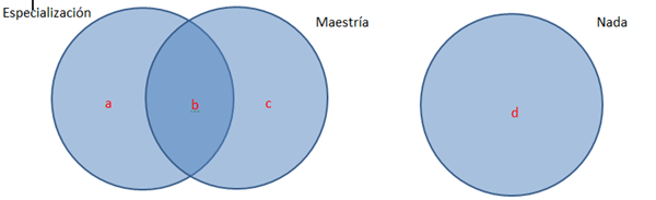 En la población docente el 50% tienen especialización, el 30% Maestría, además solo los que tienen maestría o solo los que tienen especialización son 54%, ¿Cuál es el porcentaje de los que no tienen especialización ni Maestría?
