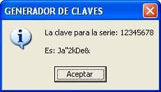 "Es: " & clave, vbInformation, "GENERADOR DE CLAVES"