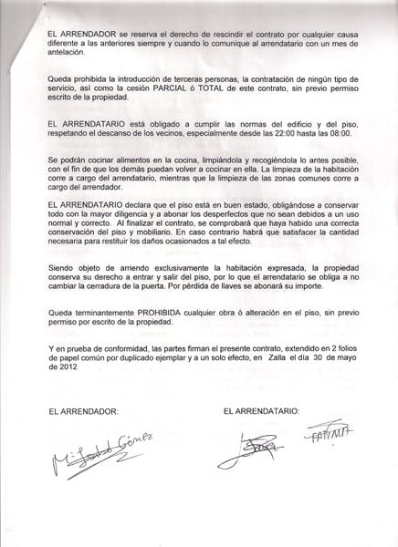 La clausula que me refiero esta en la 2ª página, segundo párrafo. Ella me dice verbalmente que no puedo tener visitas diarias de la misma persona (mi pareja por ejemplo). También una vez por semana vendo alguna cosa de tema laboral (algún portátil o similares) y traigo al cliente a casa, la mayoría de veces mi habitación y esporádicamente la cocina porque no hay salón. La dueña me dice que eso tampoco puedo hacer... Y actualmente me lo ha prohibido alegando que lo dice el contrato. ¿SI? Yo no veo que diga eso. Ayer tuvimos una reunión y me ha prohibido todo eso. Le dije que eso lo veo ilegal y que me informare a un abogado, entonces ella me amenzó con echarme del piso dándome 30 días, ¿puede hacerlo legalmente como represalia? Y en tal caso... ¿yo puedo reclamar algo de forma legal? Simplemente quiero saber si debo o no cumplir lo que ella me dice "porque si" o no y saber mis derechos. Cualquier información que me de me resultara de mucha ayuda. Asique desde ya, muchas gracias de verdad. Un saludo. P.D.: Me he fijado que el contrato lleva 2 años caducado para más inri. ¿Esto va en mi contra o a mi favor?