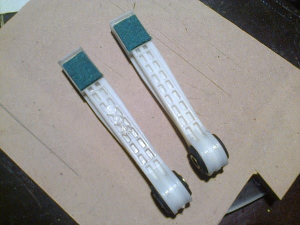 Creo recordar que yo tampoco pude quitarlos, lo que hice fue sustituir el material que hace fricción en el interior por unos trozos de fieltro muy grueso (de un tapete de esos de jugar a las cartas), un poco de grasa, y hasta ahora. Hace más de un año y no me ha dado problemas. Para eso no hace falta soltarlo de la parte superior. Te pongo una foto: