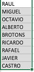 Tengo una serie de nombres en diferentes filas, en la misma columna: