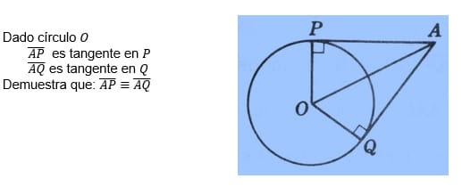 Dado círculo O (AP) es tangente en P (AQ) es tangente en QDemuestra que: (AP)≡(AQ)