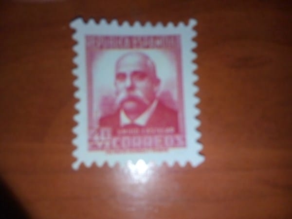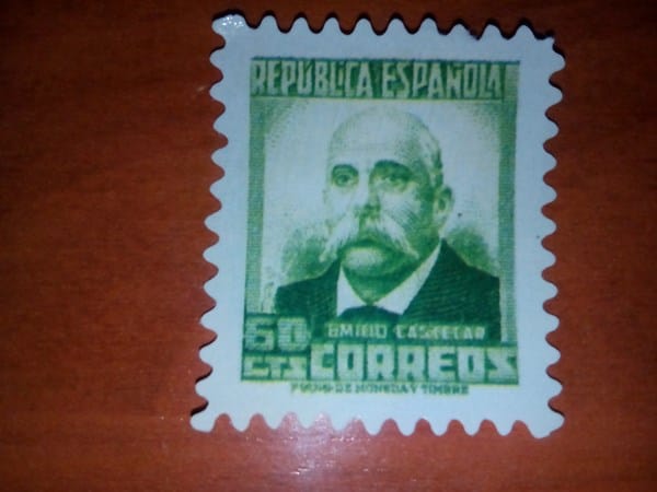 Sello de 40 centimos republica española emilio castelar un azul y otro naranja y sello de 60 centimos republica española emilio castelar color verde