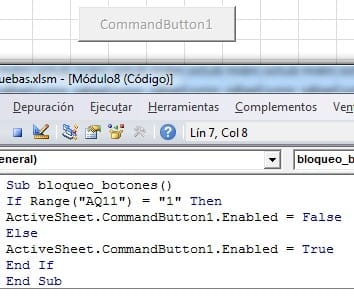 El botón se denomina CommanButton1 y me gustaría que se bloquease en función de la celda AQ11.